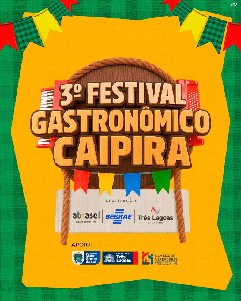 A Prefeitura de Três Lagoas, por meio da Secretaria Municipal de Desenvolvimento Econômico, Ciência, Tecnologia e Turismo (SEDECTT), é parceira no 3º Festival Gastronômico Caipira – Festa Julina, que acontecerá nos dias 25, 26 e 27 de julho, no Shopping Três Lagoas.