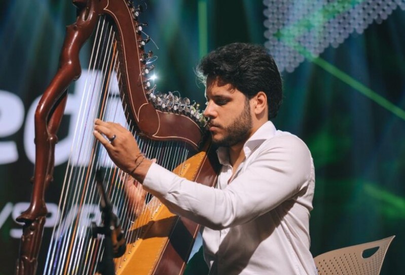 Em programa de TV, músico douradense levará o som da harpa para o Brasil