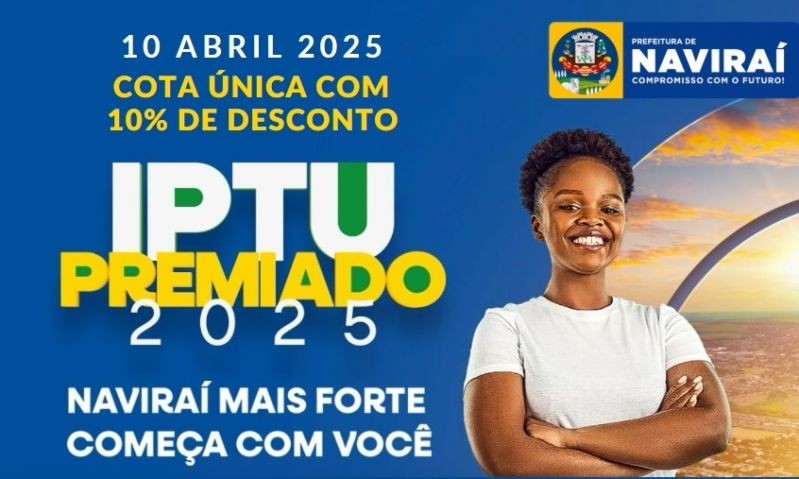 Os contribuintes do Imposto Predial e Territorial Urbano (IPTU) de Naviraí, têm até esta quinta-feira, dia 10 de abril, para garantir o desconto de 10% da cota única.