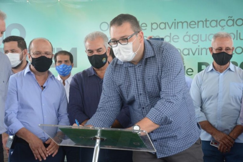 O prefeito Alan Guedes assinou, nesta segunda-feira (8), junto com o governador Reinaldo Azambuja, o documento que autoriza a abertura da licitação das obras da avenida Coronel Ponciano. O projeto foi elaborado pelo município e conta com contrapartida do Governo do Estado para a execução.