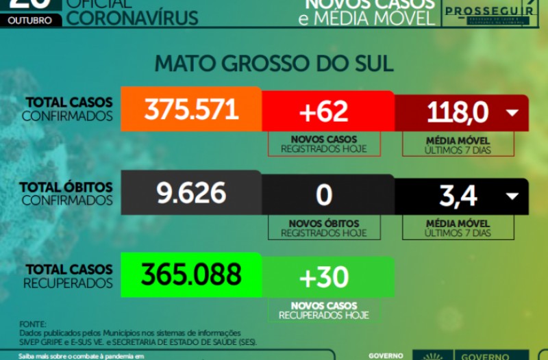Depois de um ano e sete meses, quando teve início a pandemia do Coronavírus, Mato Grosso do Sul divulga um boletim epidemiológico sem nenhum registro novo de morte em consequência da doença.