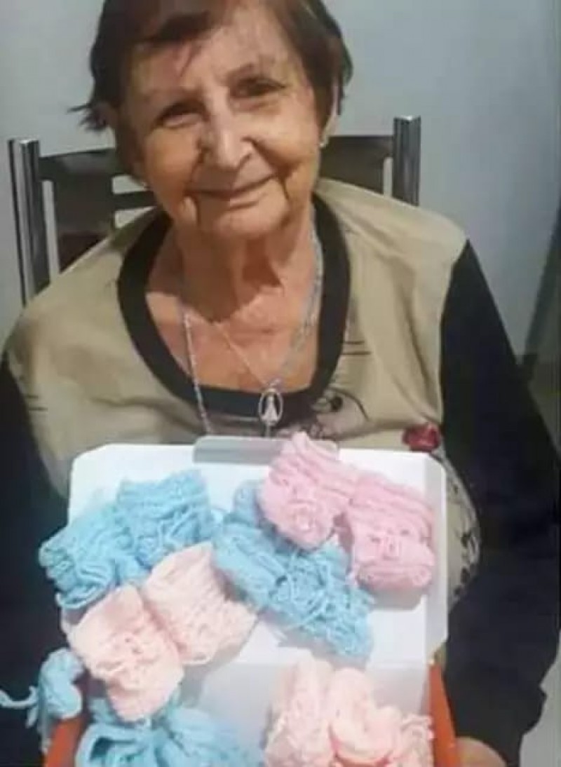 À mão, Dona Lindéia, de Campo Grande, fez mil sapatinhos de bebês para doar às mães em hospital