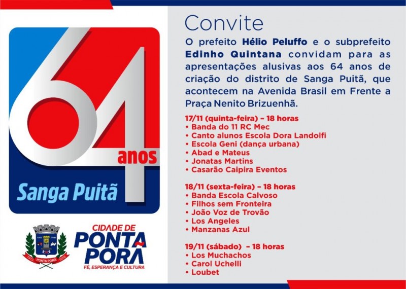 O Distrito de Sanga Puitã comemora 64 anos de criação nesta semana, com várias atrações para a popula&cce...