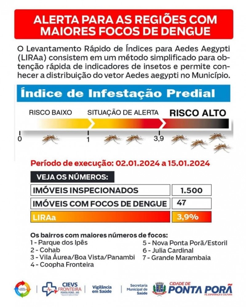 A Secretaria Municipal de Saúde alerta os moradores de Ponta Porã para o aumento de casos de dengue me nossa cidade. O per&iacu...