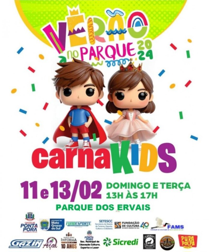 Parque dos Ervais, em Ponta Porã, terá Carna Kids no domingo e terça de carnaval