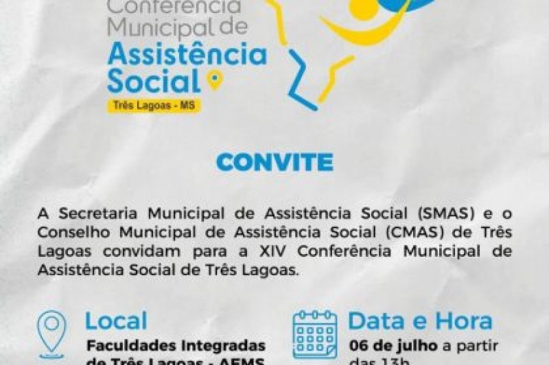SMAS e CMAS convidam população de Três Lagoas para a XIV Conferência Municipal de Assistência Social na próxima quinta e sexta-feira (06 e 07)