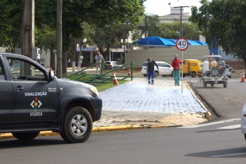 Núcleo Municipal de Trânsito executa revitalização em torno da Praça Central de Naviraí