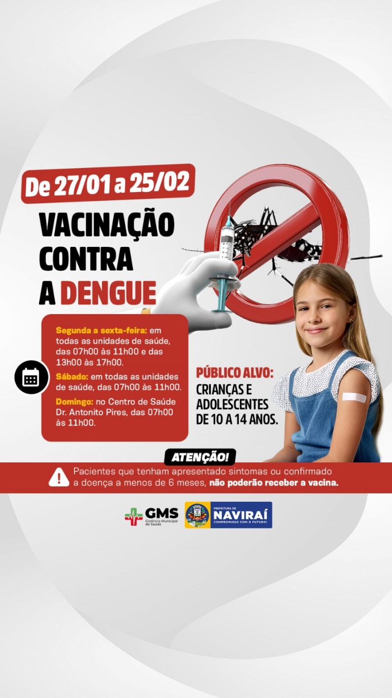 Gerência de saúde de Naviraí abre campanha de Vacinação contra a Dengue!